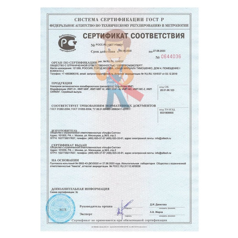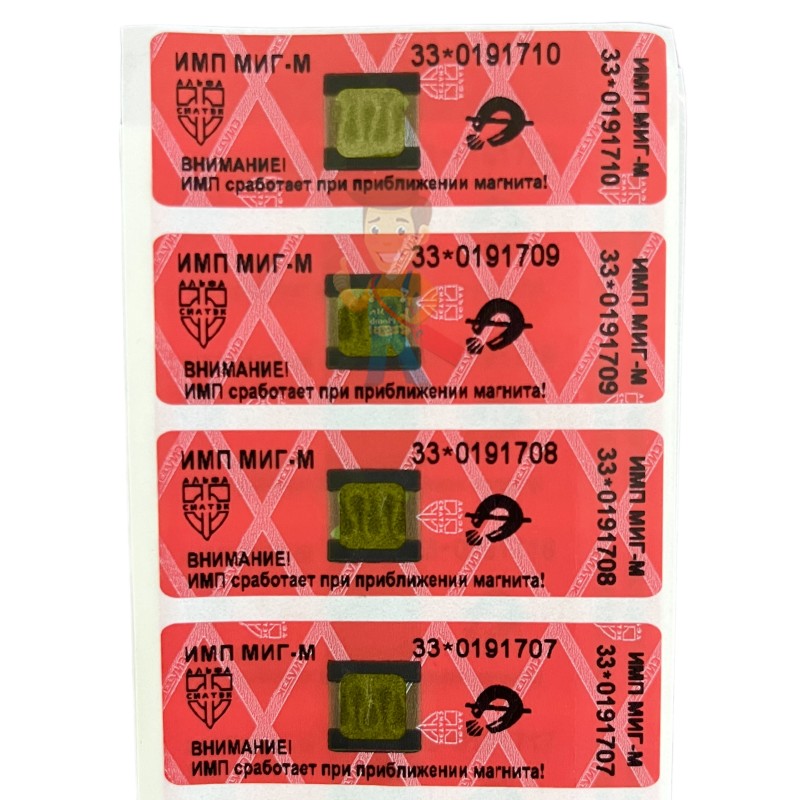 ИМП МИГ-М – надежно фиксирующаяся на объекте антимагнитная пломба. Номерному устройству для пломбирования объектов свойственна высокая чувствительность. В состав сигнального изделия входит пломба-наклейка, в которую интегрирован индикатор магнитного поля.
