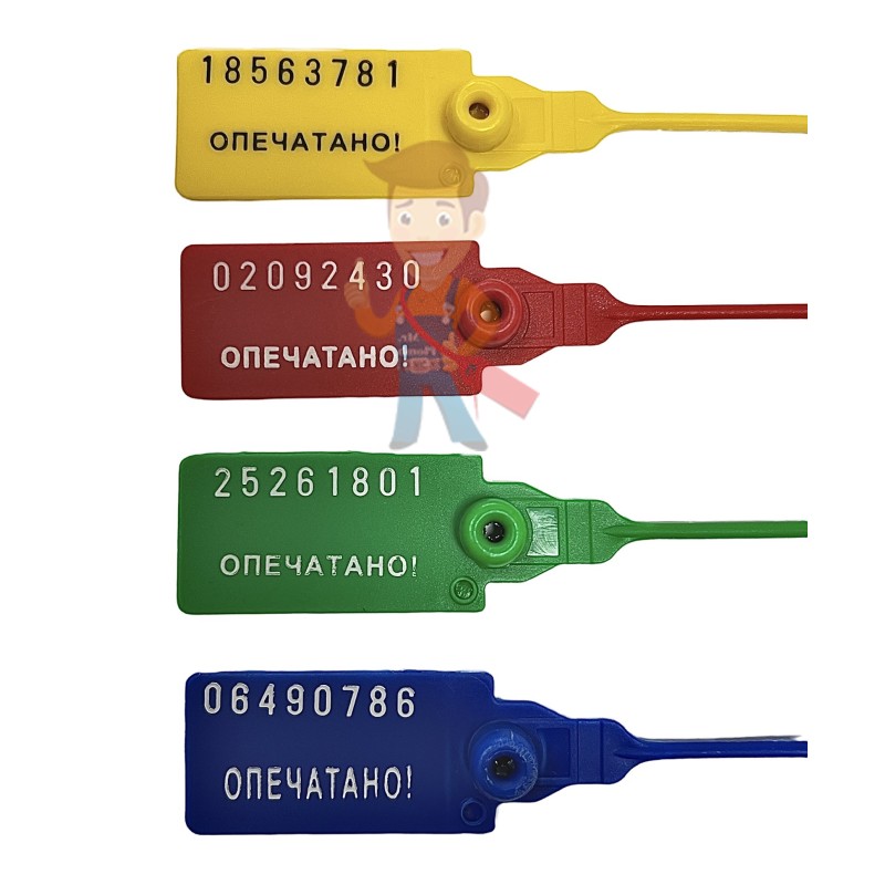 На пломбу нанесен индивидуальный код, состоящий из семи или девяти цифр. При крупном заказе возможно нанесение логотипа заказчика. Применять пломбу можно при температурном режиме от 40 до 60 оС.
