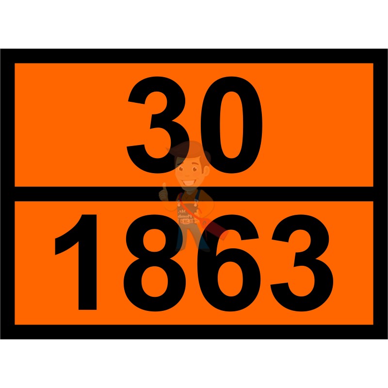 Знак ООН 30/1863 крепится на автомашины, цистерны или отсеки, в которых транспортируется авиационный керосин. Номер выполнен на самоклеящейся плёнке СКП-580. В качестве покрытия применяется светоотражающая оранжевая пленка. Посредством широкой полосы изделие по горизонтали делится пополам, где вверху указан опознавательный код опасности, внизу – номер ООН вещества. Габариты таблички – 400х300 мм.