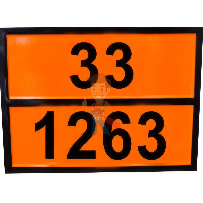 Знак ООН 33/1263 предназначен для маркировки средств передвижения, цистерн или отсеков, в которых транспортируются лакокрасочные материалы (в том числе растворитель или разбавитель краски). Номер выполнен на самоклеящейся плёнке СКП-580.